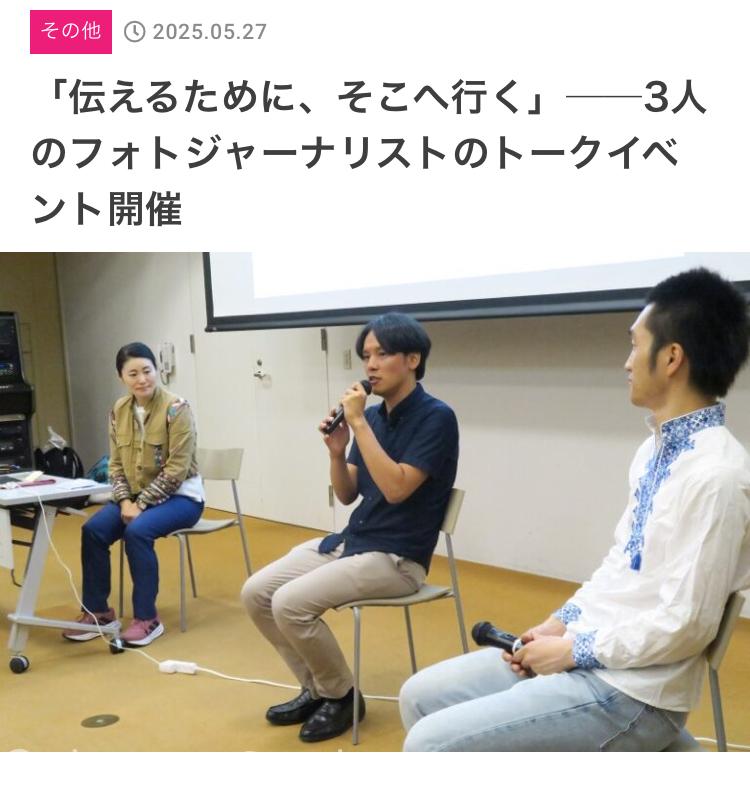 5月16日(金)武蔵野プレイスにて、世界を舞台に活動する3人のフリーフォトジャーナリストによるトークイベントが開催されました。登壇したのは、小野寺翔太朗さん、川嶋久人さん、小松由佳さん。それぞれが紛争地や難民キャンプなど...