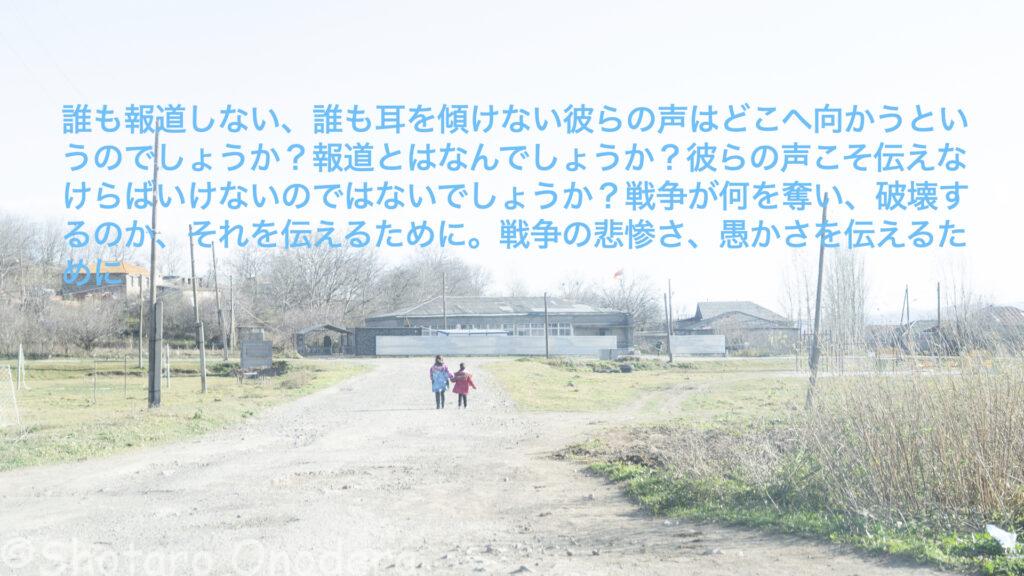 誰も報道しない、誰も耳を傾けない彼らの声はどこへ向かうというのでしょうか?報道とはなんでしょうか?彼らの声こそ伝えなければいけないのではないでしょうか?戦争が何を奪い、破壊するのか、それを伝えるために。戦争の悲惨さ、愚かさを伝えるために。